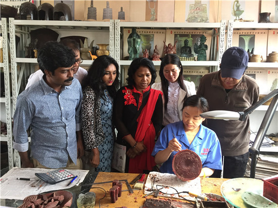 为认真贯彻落实习近平总书记关于推进“一带一路”战略的倡议,积极融入“一带一路”建设,增进民间互信、民心互通,促进双边文化交流,加强东西方文明的互通借鉴,通过文艺形式传递友谊、传播文化、传达自信,2018年5月20日下午,来自孟加拉国立艺术学院剧团的表演艺术家们莅临安阳市司母戊公司殷商文化研学游基地参观。